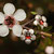 Hand pierced blossom shape, these earrings are created in sterling silver and pink Sapphires.