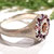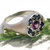 Hand set natural Garnets centre and natural Sapphires. All set in solid sterling silver which is brushed for the antique, unique look.